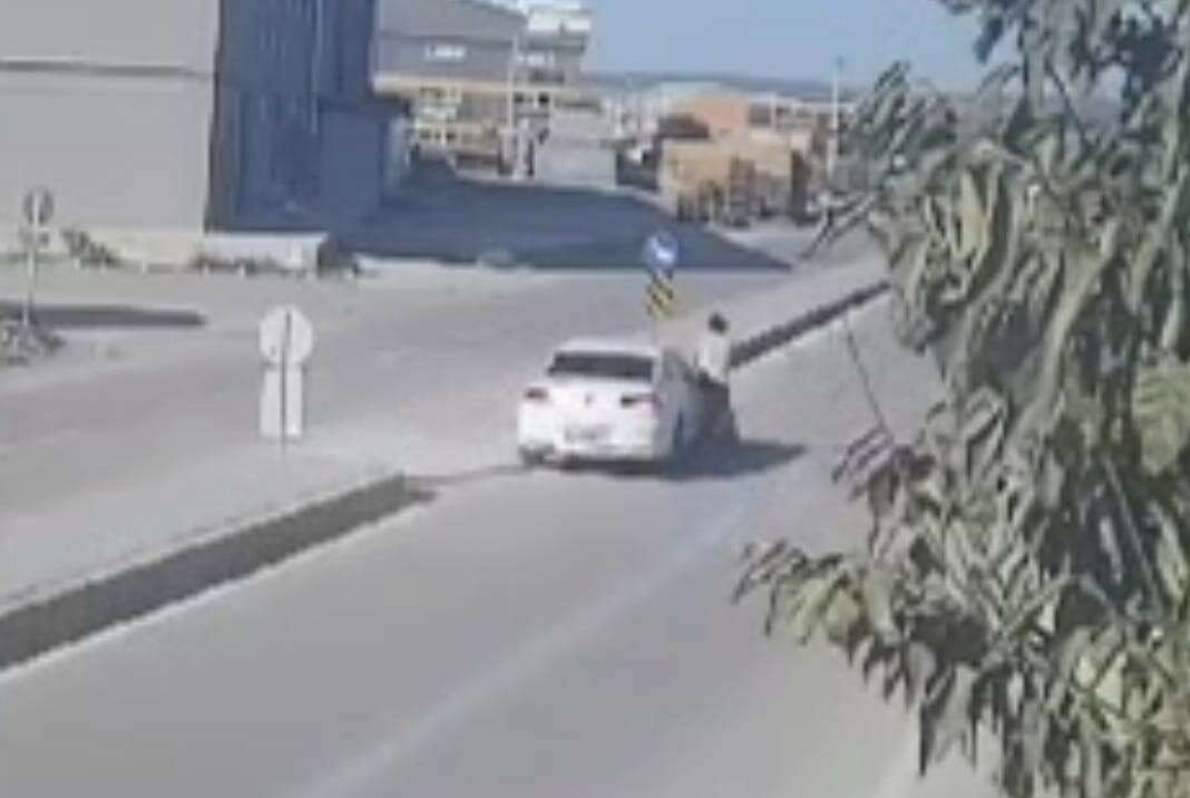Kaza anı bir işyerinin güvenlik kamerasına saniye saniye yansırken, olay yerinden kaçan otomobilin sürücüsü 5 saat sonra yakalandı.