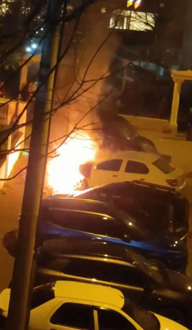 Sitenin otoparkına park edilen araç bir süre sonra kaput kısmından alev almaya başladı. Hızla büyüyen alevler aracı sarınca, diğer araçlara sıçramasından korkan mahalle sakinleri korku dolu anlar yaşadı.