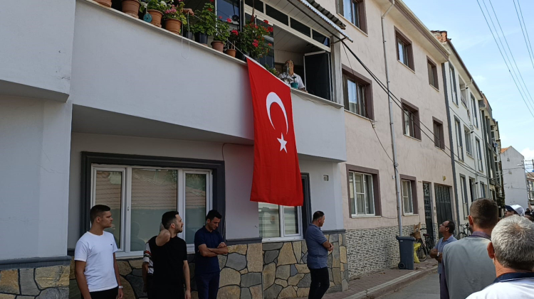 Şehit polis müdürü Muhsin Aydemir'in Mesudiye Mahallesi'ndeki baba ocağına Türk Bayrağı asıldı.