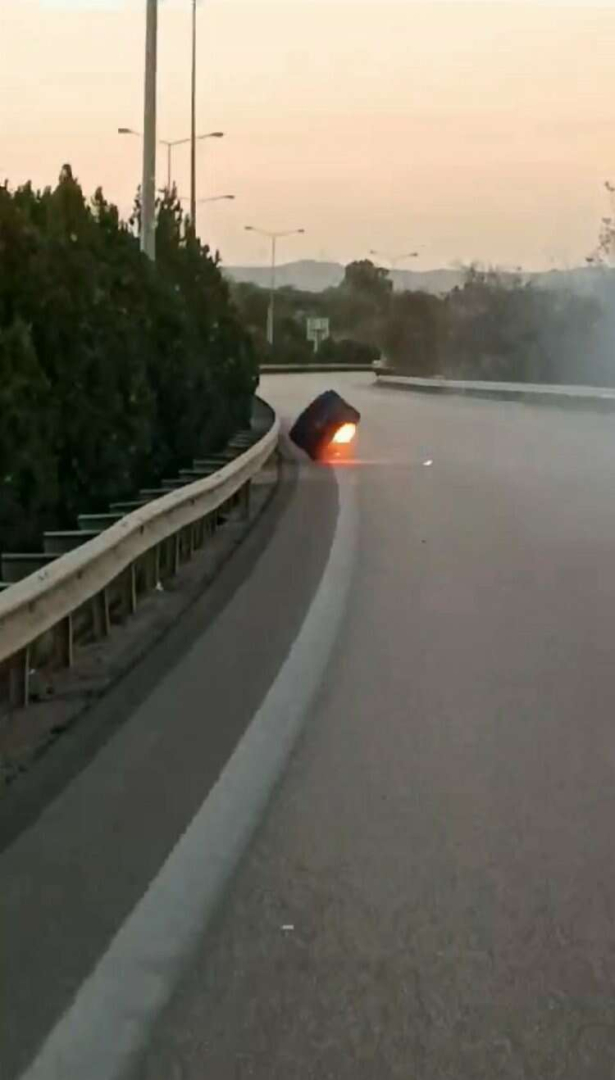 Bu esnada trafikteki başka sürücü de yardıma koşarak yangın tüpüyle müdahale edip, alevlerin büyümesinin önüne geçti. O anlar başka bir sürücünün amatör kamerasına yansırken, anayolda herhangi bir aracın olmaması muhtemel bir facianın önüne geçti.