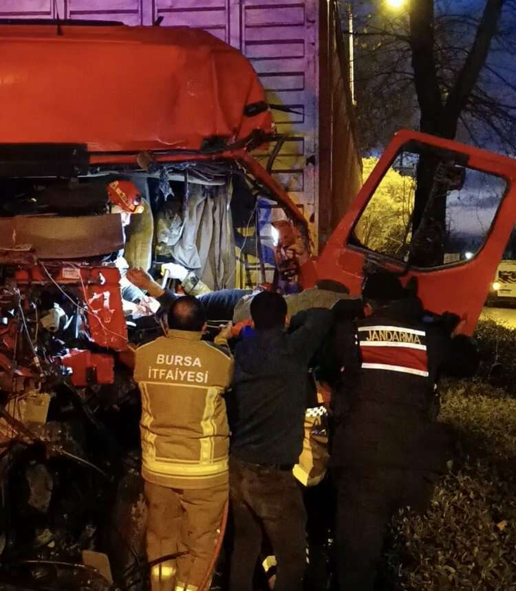 Bursa'nın İnegöl ilçesinde meydana gelen kazada kontrolden çıkan tır, ağaca çarptı.
