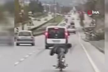 Bursa’nın Osmangazi ilçesi Ovakça mevkiinde meydana gelen olayda, kasksız motosiklet sürücüsü, motosikletiyle ilerlediği sırada yaptığı hareketlerle tehlikeye davetiye çıkardı.