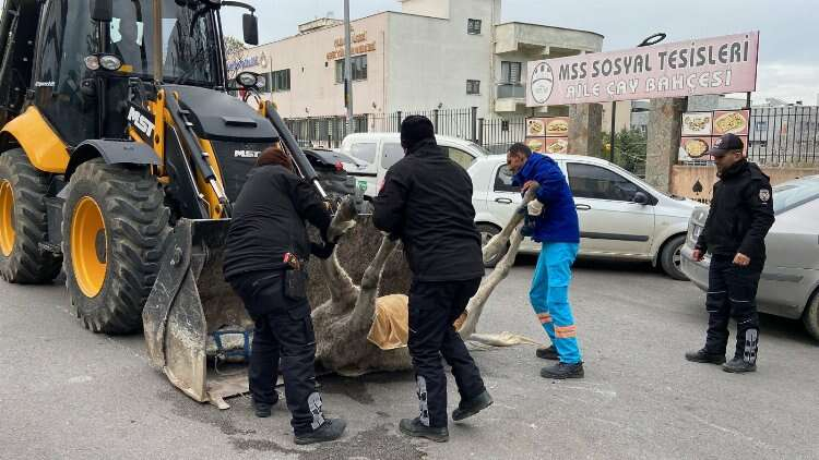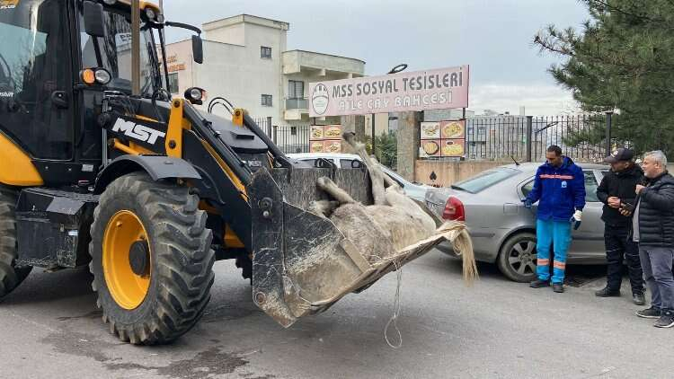 Atın öldüğü anlaşılınca Yıldırım Belediyesi ekipleri tarafından iş makinesi yardımıyla olay yerinden kaldırıldı.