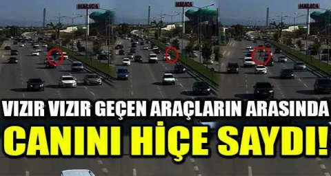 Vızır vızır geçen araçların arasında canını hiçe saydı