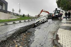 Arnavutköy’de yağmur suyu kanalı çalışmaları nedeniyle yola koyulan dubalar yoğun yağış ve rüzgardan kaynaklı uçunca bir sürücü açılan çukuru göremeyerek içine düştü. Belediyeden yapılan açıklamada, sürücünün maddi zararı karşılanacağı belirtildi.