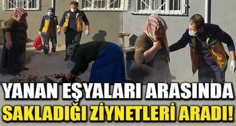 Yanan eşyaları arasında sakladığı ziynet eşyalarını aradı
