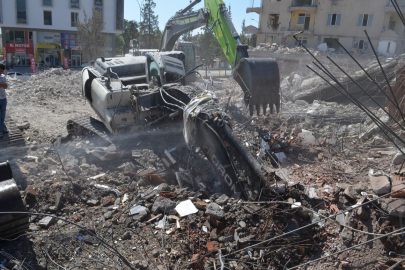 Kahramanmaraş’ta ağır hasarlı bina yıkım çalışması sırasında iş makinesi enkaz altında kaldı. İş makinesi operatörü ise kazayı yara almadan atlattı.