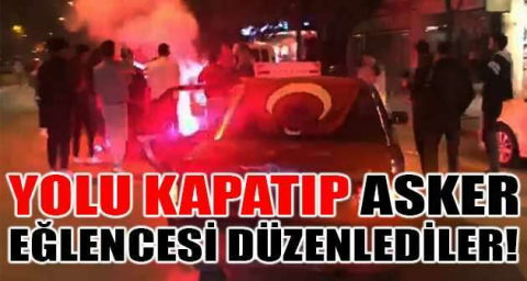 Yolu kapatıp asker eğlencesi düzenlediler