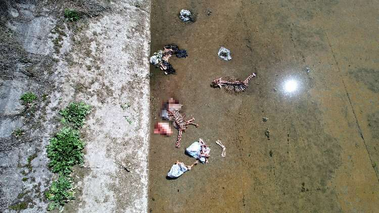 Çevreye kötü koku yayılması üzerine vatandaşlar durumu ekiplere bildirdi. Bölgeye gelen ekipler at ve eşek eti kalıntılarının kimin tarafından atıldığını tespit edemezken, bölgede temizlik çalışması yaptı.