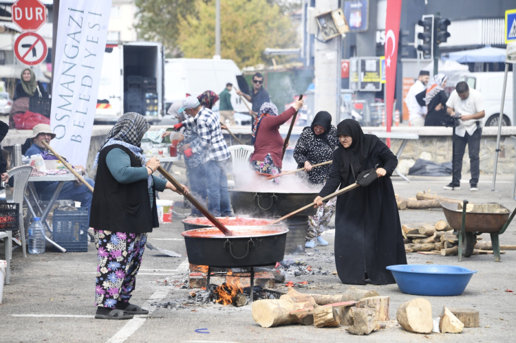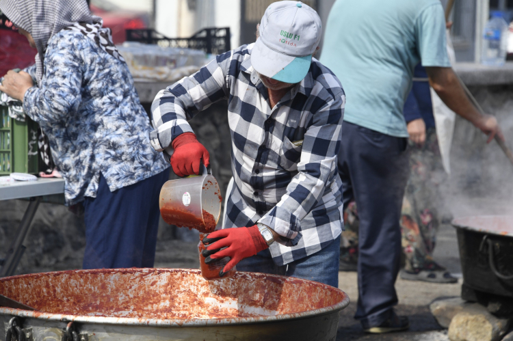 Bursa'nın merkez Osmangazi ilçesinde ihtiyaç sahipleri için imece usulüyle bir seferberlik hayata geçirildi. Belediyenin domates ve biberleri temin etmesiyle bu kişilerin bir yıllık salça ihtiyacı imece usulüyle odun ateşinde kaynatılarak hazırlandı.