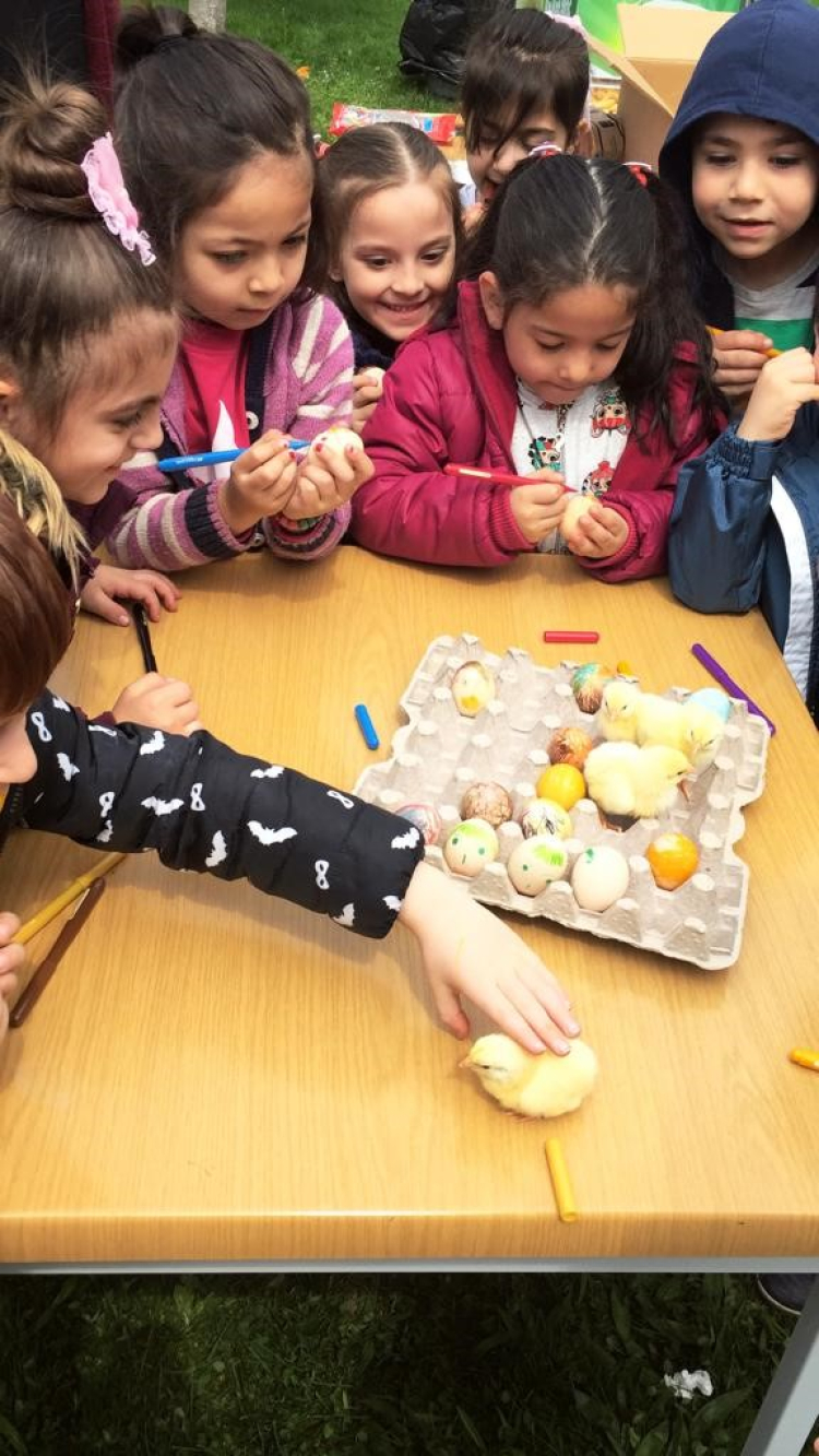 Etkinlikte çocuklara özel olarak hazırlanan tavuk yumurtaları, minik ellerde adeta birer sanat eserine dönüştü. Kimi yumurtasını boyadı, kimi üzerine adını yazdı, kimi de çizdiği resimlerle yumurtalara hayat verdi. Hayallerin şekil bulduğu bu etkinlikte, doğanın armağanı olan yumurtalar çocukların hayal dünyası ile renklendi.