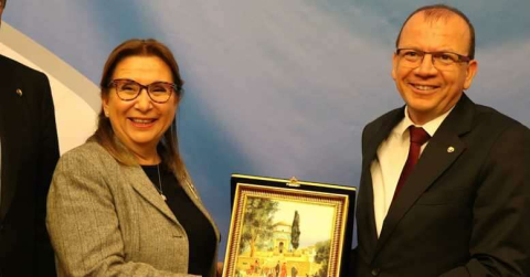 Balıkesir’de düzenlenen Bölge İstişare Toplantısına Bakan Pekcan’ın yanı sıra TOBB Yönetim Kurulu Üyesi Özer Matlı, Balıkesir Valisi Ersin Yazıcı, TESK Yönetim Kurulu Başkanı Bendevi Palandöken, DEİK Yönetim Kurulu Başkanı Nail Olpak, Balıkesir Sanayi Odası Yönetim Kurulu Başkanı Ahmet Hasan Eğinlioğlu, Balıkesir Ticaret Odası Yönetim Kurulu Başkanı Rahmi Kula, Balıkesir Ticaret Borsası Yönetim Kurulu Başkanı Faruk Kula, Balıkesir Esnaf Odaları Başkanı Fehmi Erdem ve iş dünyası katıldı. Toplantının sonunda TOBB Yönetim Kurulu Üyesi Özer Matlı, Bursa ipeğinden yapılmış tabloyu Bakan Pekcan’a hediye etti.