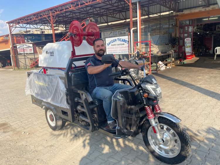 "Patpat ile birçok kaza yaşandı ölümler oldu. Elektrikli araçlar daha güvenli. 35 kilometreye kadar hız yapabiliyor. Bahçesine ilaç atabiliyor, 500 kilogramlık su tankıyla su taşınabiliyor. Şu anda çok talep görüyor. Çiftçi artan girdi maliyetlerini düşürmenin yollarını arıyor. Cebini düşünen çiftçiler bunu alıyor."