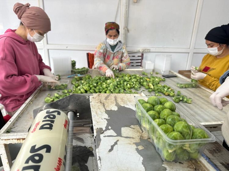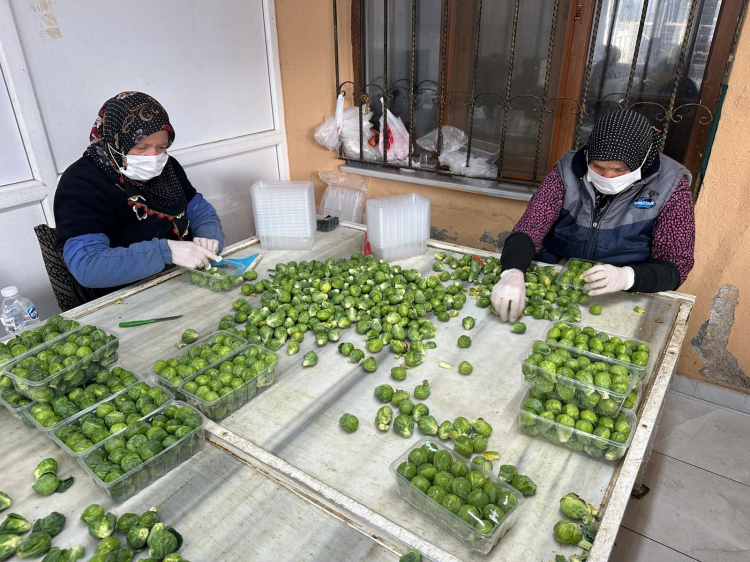 Kocabaş, üretilen Brüksel lahanasının toplandıktan sonra ama soğuk hava depolarına ve işleme tesislerine getirildiğini belirterek, burada tasnif ve paketleme yapıldığını anlattı.