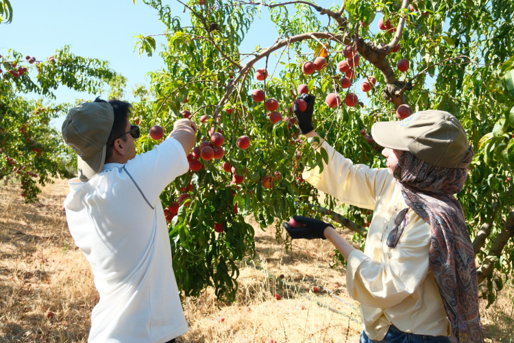 "İkinci sınıf öğrencileri çiftlik stajı yapıyor. 9 bölümün öğrencileri hasat ediyor. Eylül sonuna kadar sürüyor. Öğrenciler nektarin ve şeftali çeşitlerini tanıyorlar. Şeftalide ne var hasadı nasıl yapılıyor görmüş oluyorlar. Bitki koruma öğrencileri hastalık ve zararlılarını öğreniyorlar. Hem onların öğrenmesini sağlıyoruz hem üretim yaparak döner sermayeye katkı sağlıyoruz hem de üreticilere yol gösterici çalışmalar yürütüyoruz. Öğrenciler, koleksiyon bahçesinde okuldan sonraki hayatları için tecrübe kazanıyor."