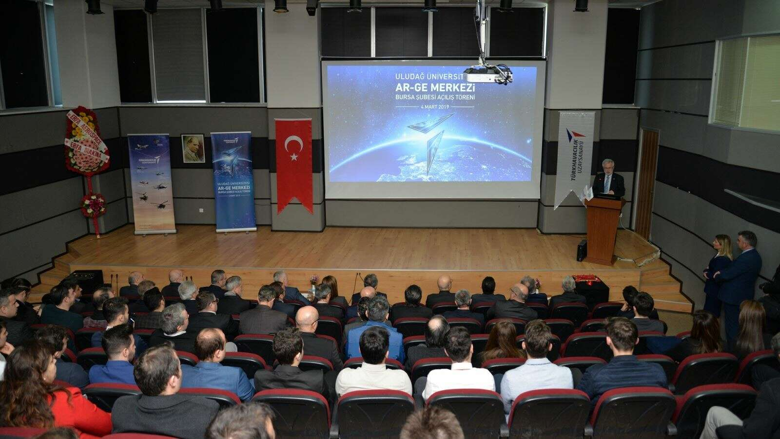ULUTEK Toplantı Salonu’nda gerçekleştirilen açılış töreninde konuşan TUSAŞ Yönetim Kurulu Başkanı Prof. Dr. Oğuz Borat, yüksek teknolojili katma değer sağlayan bütün ürünlerin bilimsel çalışma şartından geçtiğine işaret etti. Üniversitelerin ve teknoparkların ciddi bilimsel çalışmalara imza attığını söyleyen Prof. Dr. Oğuz Borat, bu kurumlara ayrılan kaynakların daha da yukarılara çekilmesi gerektiğini kaydetti. Görükle Kampusu'nda açılan Ar-Ge Merkezi’ne Bursa Uludağ Üniversitesi’nin, Bursa Teknik Üniversitesi’nin ve Yalova Üniversitesi’nin bilimsel katkılar sağlayacağını belirten Borat, “Bursa gibi sanayisi ve hizmet sektörü çok gelişmiş olan bir şehrin bu merkezin arkasında duracağına inanıyorum ve bu beni sevindiriyor. Bizler de kurum olarak Bursa’dan çok sayıda sanayi merkezi ile işbirliği içerisinde çalışmalarımızı sürdürüyoruz. Gerek şehir sanayicilerinin gerekse de bu üniversitelerin katkıları ile buradaki merkezimizin büyük çalışmalara imza atacağına inanıyorum. Yakın zamanda da inşallah buradaki projelerin sonuçlarını göreceğiz. TUSAŞ benzeri kurumlar bilimsel yapı temelli çalıştığı için üniversiteler ile sürekli dirsek temasındadır. Bursa Uludağ Üniversitesi’nde açtığımız bu merkezin de kurumumuza çok büyük hizmetler sağlayacağına inancım tamdır” diye konuştu.
