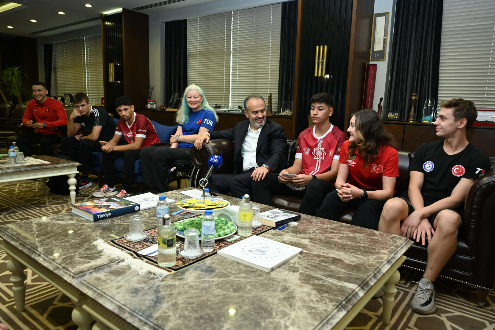 Bünyesindeki 24 branş ve binlerce sporcuyla Bursa’nın sporda önemli bir lokomotifi olan Büyükşehir Belediyespor’un milli formayla derece elde eden sporcuları Başkan Alinur Aktaş’ı ziyaret etti.