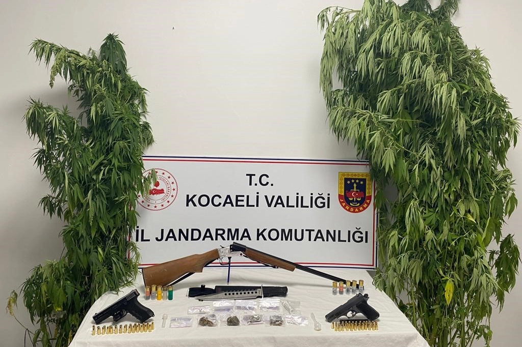 Kocaeli İl Jandarma Komutanlığınca, uyuşturucuyla mücadeleye yönelik çalışmalarını yürütüyor. Ekipler, Karamürsel ilçesinde bir şüphelinin evinin bahçesinde 35 kök kenevir bitkisi evin içinde ise 15 gram esrar, 8 gram metamfetamin, 3 sentetik ecza, 2 uyuşturucu madde kullanma aparatı, ruhsatsız tabanca, kurusıkı tabanca, ruhsatsız av tüfeği, 63 fişek ve bıçak ele geçirildi. Malzemelere el koyulurken olayla ilgili ev sahibi gözaltına alındı. İfadesi alınan şahıs, çıkarıldığı mahkemece adli kontrol şartıyla serbest bırakıldı.