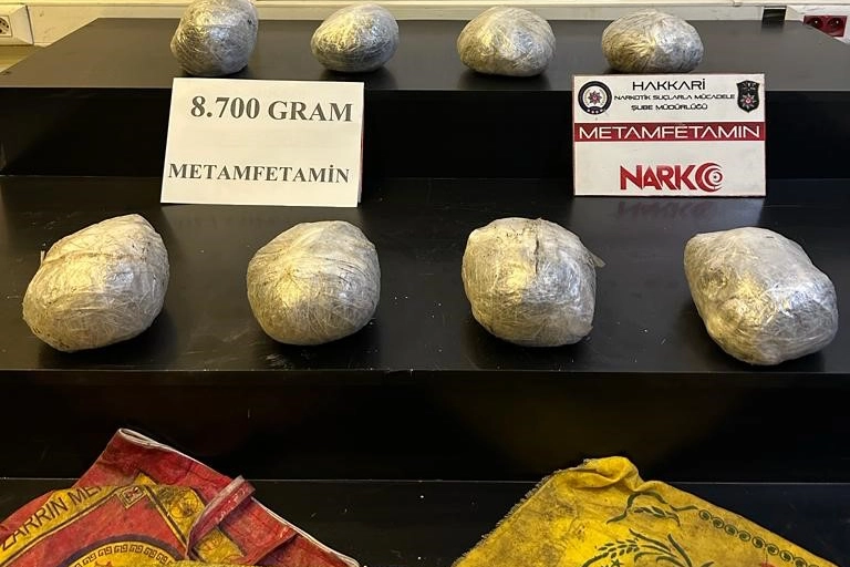 Hakkari'nin Yüksekova ilçesinde polis ekipleri tarafından bir araçta yapılan aramada 8 kilo 700 gram metamfetamin maddesi ele geçirildi. Hakkari Valiliği tarafından yapılan açıklamada, "İl Emniyet Müdürlüğümüzce yapılan çalışmalarda, Yüksekova ilçesinde planlı projeli yapılan çalışmalarda, Esendere - Yüksekova karayolunda istihbarı bilgiler çerçevesinde seyir halinde olan bir araç uzaktan takibe alınmış, ilçe merkezine yaklaştığında polis kontrol noktasında durdurulmuştur. Yüksekova Cumhuriyet Başsavcılığından adli arama kararı talep edilmiş, yapılan arama sonucunda 8 kilo 700 gram metamfetamin maddesi ele geçirildi" denildi.