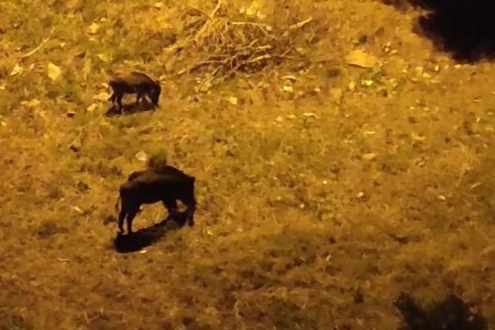 Olay Gemlik ilçesi Manastır Mahallesi'nde meydana geldi. Edinilen bilgiye göre, aç kalan domuz sürüsü havanın kararmasına yakın saatlerde yemek aramak için şehir merkezine indi. Bir süre çöp konteyneri ve ağaçlık alanda yemek arayan domuzlar mahallelinin şaşkın bakışları arasında geldikleri ormanlık alana girerek gözden kayboldu.