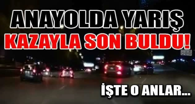 Bursa'da trafikte yarıştığı iddia edilen iki araçtan biri, sollama yaparken orta şeritten geçen bir başka otomobile arkadan çarptı.
