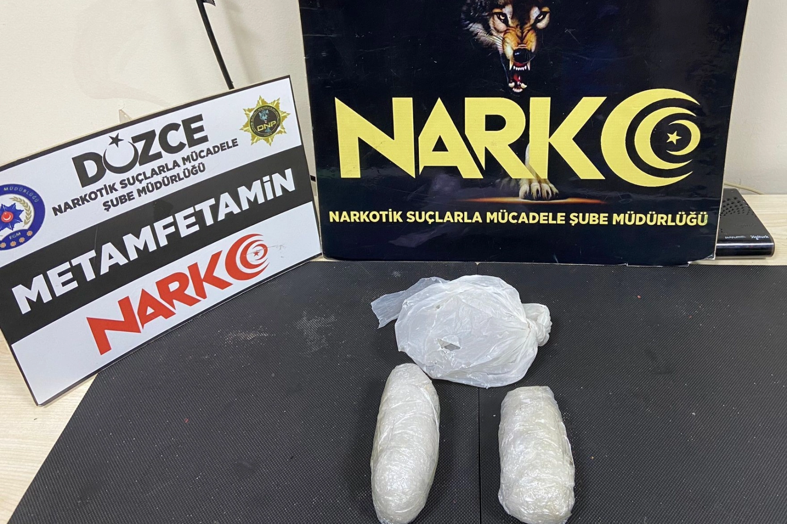Düzce’de polis ekipleri tarafından yapılan çalışmada Düzce’ye uyuşturucu getireceği ihbarı ile durdurulan araçta uyuşturucu bulunmadı. Araçta bulunan şahsın, uyuşturucuyu yol kenarına attıkları itirafıyla gerçek ortaya çıktı. Düzce Cumhuriyet Başsavcılığının uyuşturucu ile mücadelesi sürüyor. İl Emniyet Müdürlüğü Narkotik Suçlar Müdürlüğü ekipleri Düzce’ye uyuşturucu madde getireceği değerlendirilen Ankara plakalı araç yol kontrolünde durduruldu. Araçta yapılan aramada olumsuzluğa rastlanılmayınca şahıslarla ayrı ayrı mülakat yapılıp gönderildi. Olaydan bir gün sonra araçta bulunan A.B.’nin emniyete gelerek aracın sağ ön cam kısmından uyuşturucu madde attığını beyan etmesi üzerine TEM Otoyolu üzerinde araştırma yapıldı. Yapılan araştırmada 2 parça halinde 400 gram metamfetamin maddesi ele geçirildi. Şüpheli A.B. ifadesinin ardından salınırken diğer şüpheli S.Ş. (49) yakalanarak adli makamlara sevk edildi. S.Ş. çıkarıldığı mahkemece tutuklandı.