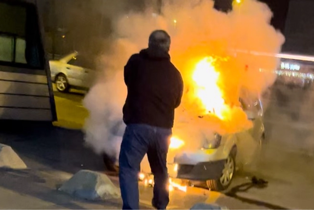 Öte yandan vatandaşların alev alev yanan otomobile yangın tüpüyle müdahale etmesi cep telefonu kameralarına yansıdı. Polis ekipleri olayla ilgili inceleme başlattı.