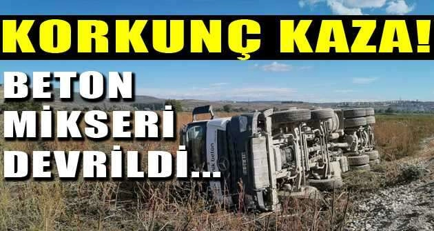 Bursa'nın İnegöl ilçesinde meydana gelen kazada kontrolden çıkan beton mikseri tarlaya devrildi, sürücüsü yaralandı.