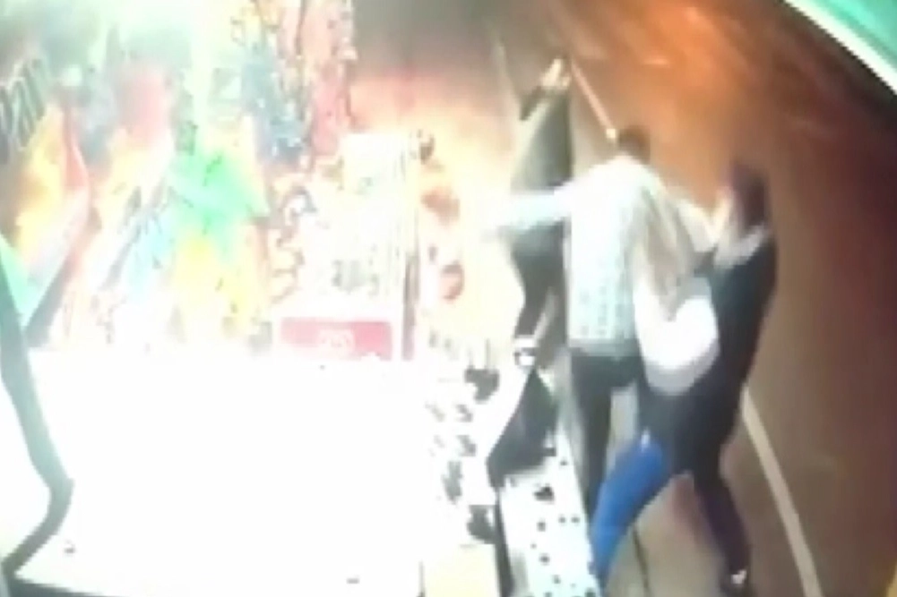 Bıçaklı saldırgan, bir marketin önüne geldiği sırada mahalle gençleri tarafından etkisiz hale getirildi. O anlar anbean güvenlik kamerasına yansıdı.