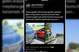 Paylaşımda “Nazara geldik. Girilmemesi gereken şeritten gelen araçla bizim aracımız arasında kaza meydana geldi.