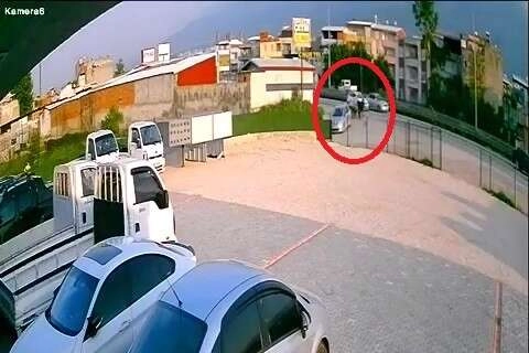 Çarpışmayla savrulan at olay yerinde telef olurken, kaza anı güvenlik kamerasına anbean yansıdı.