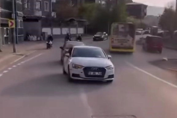 Konvoydaki tehlikeli hareketler, arkadaşları tarafından cep telefonlarıyla kaydedildi. Görüntüler daha sonra sosyal medyada paylaşıldı.