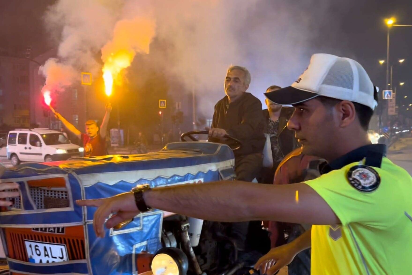 Trafik düzenlemesi yapan Emniyet Müdürlüğü Trafik ekipleri 16 ALJ 442 plakalı traktörün sürücüsü S.Ç.'yi (51) durdurdu. Durdurulan sürücünün elinde alkol dolu bardağı gören ekipler, alkolmetre testi yapmak istedi.