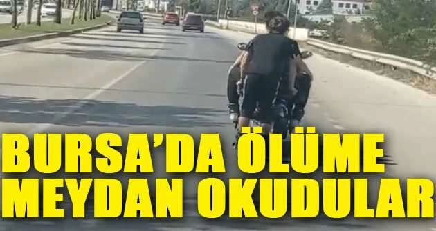 Olay, Kestel ilçesi Ankara Yolu Caddesi’nde meydana geldi. Edinilen bilgiye göre, patenli bir genç gideceği yere daha hızlı şekilde gitmek için motosiklete tutunarak ilerledi. Bir süre canını hiçe sayarak giden genç, daha sonra ara sokağa girerek gözden kayboldu. Öte yandan diğer bir görüntü ise merkez Yıldırım ilçesi Samanlı Kavşağı’nda meydana geldi. Kimliği bilinmeyen bir kişi canını hiçe sayarak açık kasa kamyonet aracın kasasında bulunan yükün üzerinde seyretti. O anlar trafikteki başka bir sürücünün cep telefon kamerasına yansıdı.