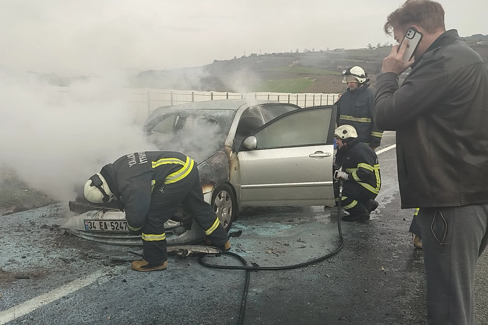 Bir anda alev alan otomobildeki araç yangınına çevreden yetişen diğer sürücüsüler yangın tüpleri ile ve itfaiye ekipleri tarafından müdahale edildi. Olay saat 9.30 sıralarında Yalova-Bursa Karayolu, Orhangazi Süpürgelik Mevkiinde meydana geldi. Alınan bilgiye göre; Yalova’dan Bursa istikametine doğru gitmekte olan 34 EA 52 47 plakalı otomobilin motor bölümünden dumanlar yükselmeye başladı. Sürücüsü tarafından emniyet şeridine çekilen otomobilin motor bölümü bir anda alev aldı. Sürücü ve yanında bulunan eşi otomobilden son anda inerek canlarını kurtarırken, büyüyen araç yangınına çevreden gelen vatandaşlar yangın tüpleri ile müdahale etti. İhbar üzerine olay yerine çağrılan itfaiye ekiplerinin müdahalesi ile otomobil yangını kontrol altına alındı. Otomobilde bulunan sürücü ile eşi aracın bagajındaki eşyalarını araçtan indirerek güvenli bir noktaya taşıdı. Yangın nedeniyle araç kullanılamaz hale gelirken, olayla ilgili soruşturma başlatıldı.