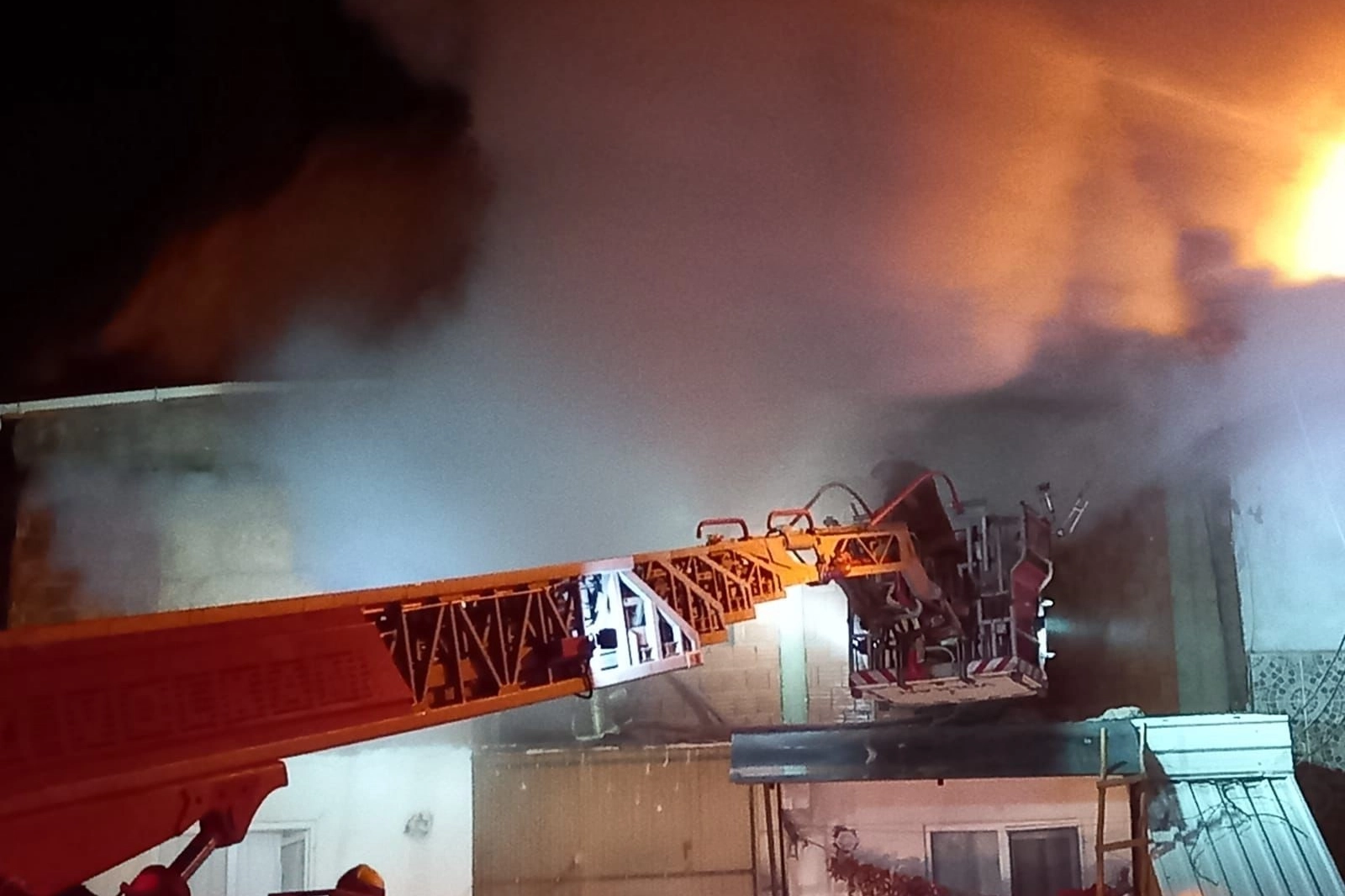 İhbar üzerine olay yerine gelen itfaiye ekipleri yangına müdahale ederken, yangında ev ve bir samanlık küle döndü.