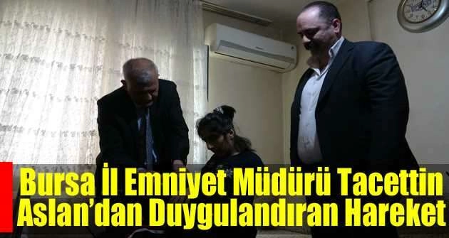 Aynı gün şüpheliler yakalanırken, İl Emniyet Müdürü Tacettin Aslan’ın devreye girmesiyle birlikte yenisi alındı. 33 yaşındaki Serebral Palsi hastası Burcu akülü arabasına kavuşmanın mutluluğunu yaşarken duygusal anlar yaşandı. Bursa’nın merkez Osmangazi ilçesi Altınova Mahallesi’nde ailesiyle birlikte yaşayan 33 yaşındaki Serebral Palsi hastası Burcu Yıldız’ın hareket etmesini sağlayan akülü engelli arabası hırsızlar tarafındnan çalınarak parçalandı. Olay üzerine harekete geçen Asayiş Şube Müdürlüğü ekipleri hırsızları aynı gün içerisinde yakalayarak gözaltına aldı. Fakat akülü araba hırsızlar tarafından parçlanmıştı. Durumu yakından takip eden İl Emniyet Müdürü Tacettin Aslan’ın organizasyonuyla birlikte devreye giren hayırsever iş insanı Zeki Türkeş, Burcu’ya yeni bir akülü araba hediye etti. Akülü araba Burcu’ya Asayiş Şube Müdürü Lütfü Zileli ve Osmangazi İlçe Emniyet Müdürü Memduh Pişik tarafından takdim edildi. Akülü arabanın kurulumu Yunus ekipleri tarafından yapılırken, arabasına yeniden kavuşan Burcu’nun sevinci kameralara yansıdı. Anlamlı hediye sonrası teşekkürlerini dile getiren Burcu Yıldız’ın annesi Şükran Yıldız, "Yirmi gün önce kandil sabahı saat 06.30’da çek çek arabalı kağıt toplayıcı kızımın engelli arabasını çaldı. Kızım 33 yaşında yürüme engelli. Aynı gün Bursa Emniyeti şüphelileri kısa sürede yakalayarak gözaltına aldı. Arabamızı geri getirdi. Ama kullanılamayacak vaziyetteydi. Sonrasında çok sağolsun il emniyet müdürümüz Tacettin Aslan ve iş insanımız Zeki Türkeş vasıtasıyla bize yeni akülü araba yolladılar. Allah hepsinden razı olsun. Kızımın en büyük ihtiyacını giderdiler. Benim kızım doğuştan Serebral Palsi hastası. Yürüyemiyor. 2011 yılından önce adım atabiliyordu, fakat o yıl girdiği ameliyatta, ameliyathane virüsü kaptı. Yatağa bağlı kaldı. Ben Burcuyla üç sene uğraştım. Oturmasını yaptım artık rahat rahat otuyordu. Ama işte akülü gidince üzüldük. Tekrardan Allah razı olsun yeniden bizi sevindirdiler’’ dedi.