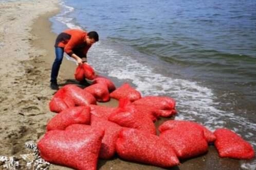 Eğerce ve Ayazma plajlarındaki kontrollerde, 20 çuvalın içinde, avlanması yasak olan yaklaşık 700 kilogram kum şırlanı ele geçirildi.