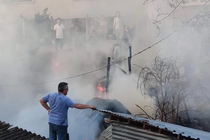 Yangın kısa sürede büyüyerek eve ve ahıra sıçradı.