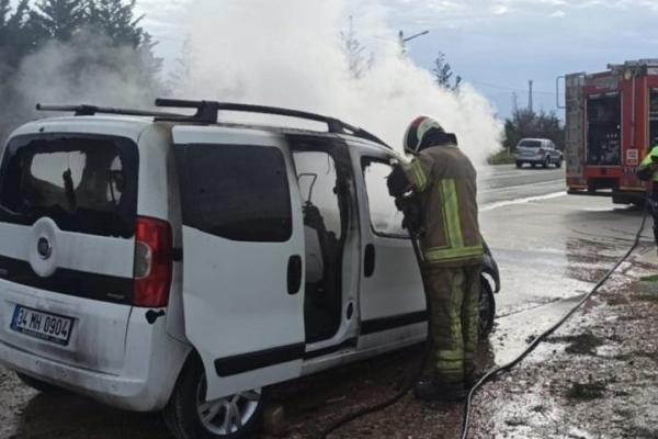 Bir anda yanmaya başlayan araçtan kendilerini can havliyle dışarı atan aile bireyleri araçlarının söndürme çalışmalarını gözyaşları içinde izledi.