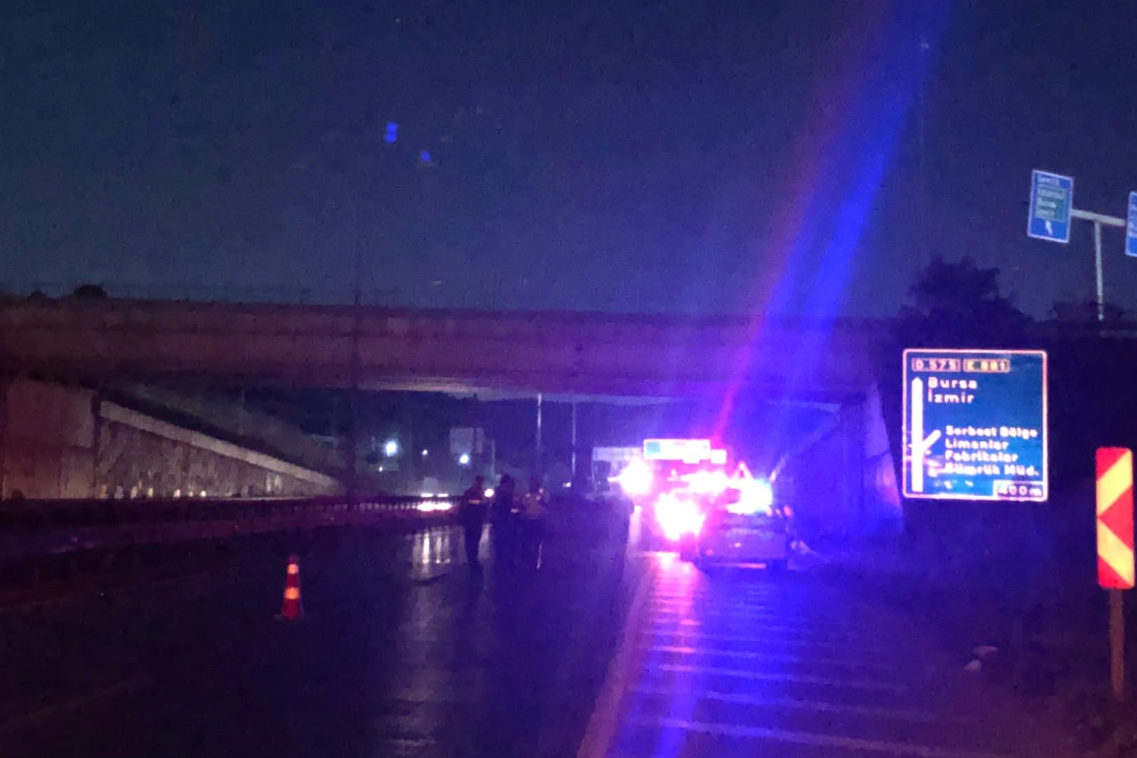 Alınan bilgiye göre, otoyol köprüsü altında meydana gelen zincirleme trafik kazasına müdahale eden trafik polisleri Doğan G. ve Ferdi A.'ya otomobil çarptı.
