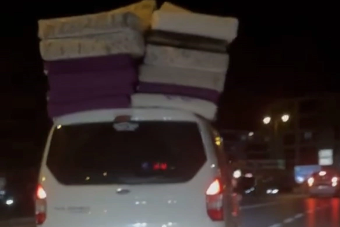 Bursa’nın İnegöl ilçesi İtfaiye Kavşağı’ndan İstiklal Caddesi'ne seyreden 16 MB 1519 plakalı hafif ticari aracın üzerine yüklenen yataklarla seyrettiğini gören sürücüler hayrete düştü.