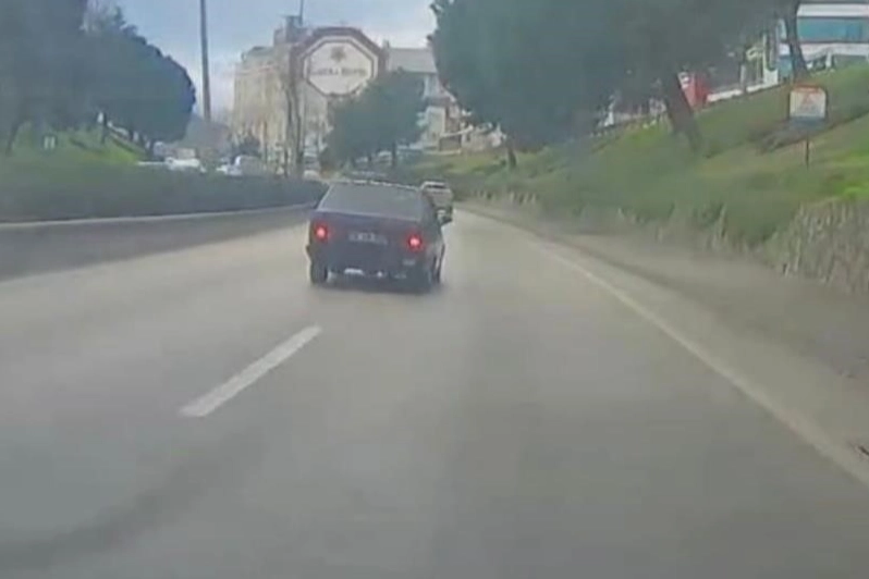 Yaşanan tehlikeli anlar trafikteki başka bir aracın kamerasına saniye saniye yansıdı. Görüntülerin ortaya çıkmasının ardından polis ekipleri sürücünün peşine düştü. Sivil trafik ekiplerince tespit edilen sürücüye yaklaşık 5 bin lira idari ceza uygulanırken, ehliyeti el konulup psikotekniğe sevk etti.