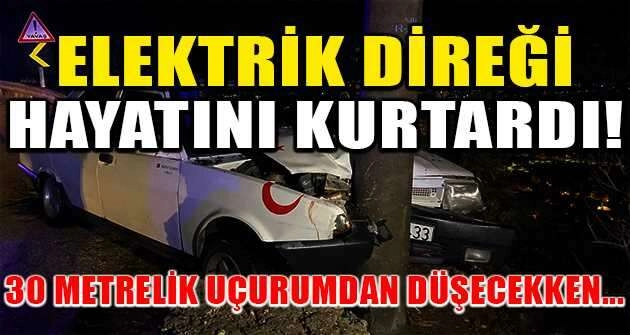 Bursa’da virajı alamayan otomobilin sürücüsü ve arkadaşı 30 metrelik uçurumdan düşmekten kıl payı kurtuldu.