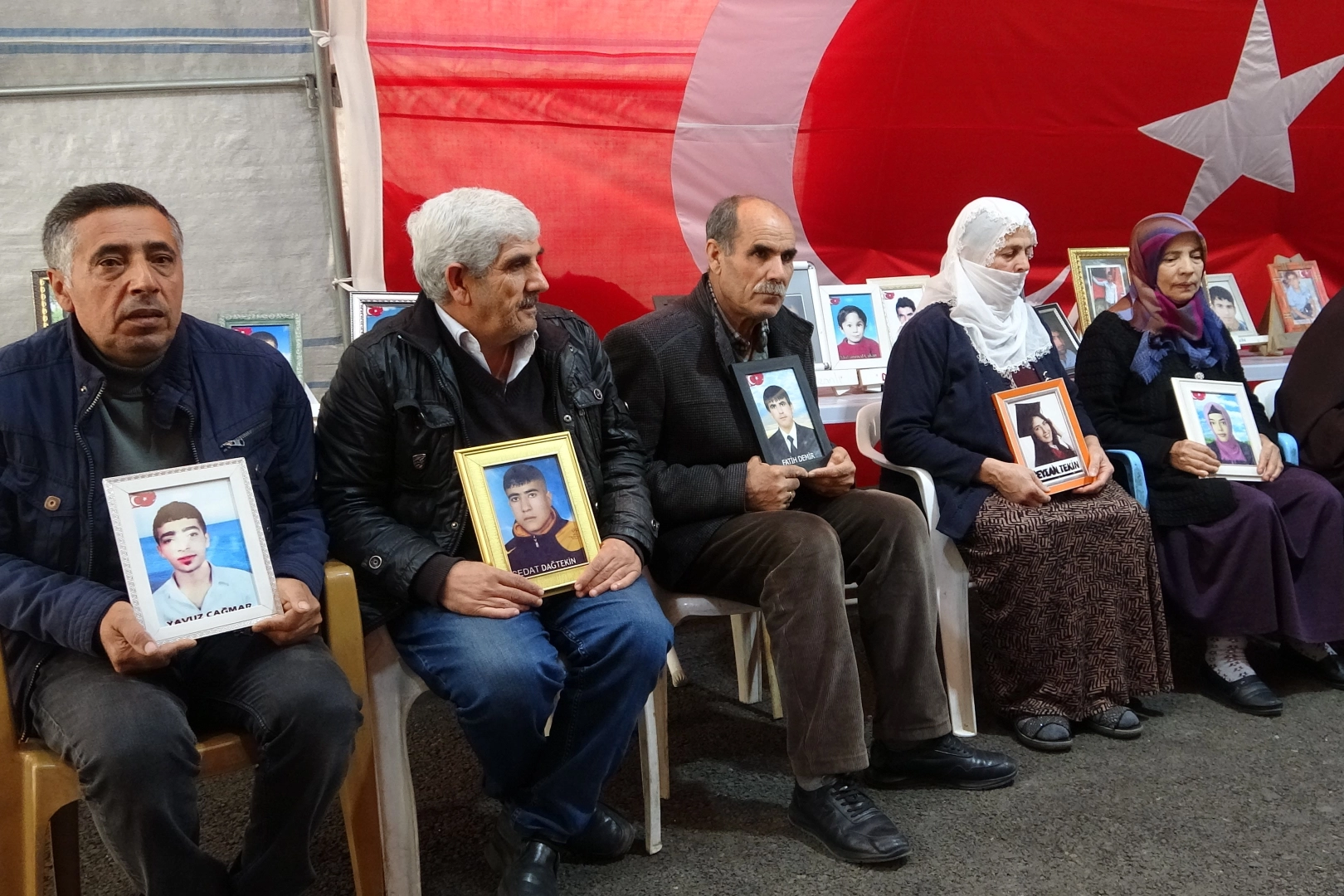 Diyarbakır’da 5 yılı aşkındır evlat nöbetinde olan aileler, çocuklarının teslim olması için çağrılarına devam ediyor. 3 Eylül 2019 tarihinden farklı kentlerden Diyarbakır’a gelerek HDP il binası önünde oturma eylemi başlatan ailelerin evlat nöbeti aralıksız devam ediyor. Oğlu Fatih Demir için evlat nöbetinde olan Abdullah Demir, 9 yıla aşkında evladından ayrı olduğunu, çocuklarını istediğini söyledi. Hiçbir zaman evladının peşini bırakmadığını belirten Demir, “Oğluma şunu diyorum, sizi kandırmasınlar. Demesinler gittiğinizde cezaevinde çürüyeceksiniz. Bak, 46 çocuğumuz geldi. Kelepçe vurulmadan anne ve babalarına teslim edildi. Oğlum, kaçın gelin bu hasretlik bitsin” dedi. Kocaeli’nden gelen Eren Yalçın’ın annesi Fadime Aksu da, 10 yıldır çocuğundan haber alamadığını dile getirerek, “5 yıldır buradayım. Yılmayacağız, onlar bizi yıldıramayacak. Bir çocuk kalana kadar mücadelemizi vereceğiz” ifadelerinde bulundu.