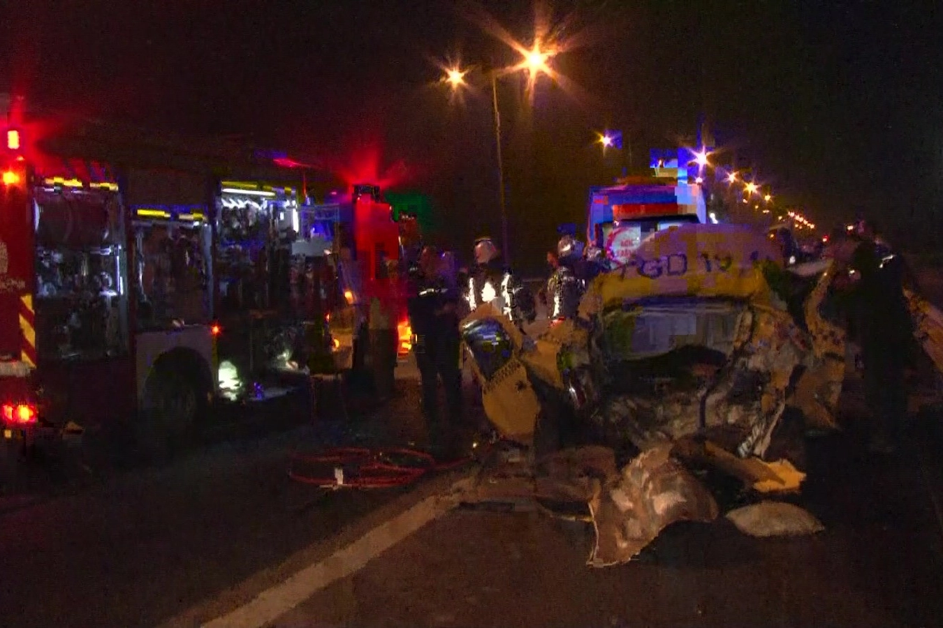 Kazada otobüs şoförü ve ticari taksi şoförü ağır yaralanırken, otobüsün muavini ise hafif yaralandı. Olay, saat 22.30 sıralarında İstanbul Kuzey Marmara Otoyolu, Ümraniye mevkii, Ankara istikametinde meydana geldi. İddiaya göre özel bir şehirlerarası otobüs firmasına ait Birol Kansu'nun kullandığı 34 GBJ 671 plakalı otobüs yolda ilerlerken önünde yavaş ilerleyen Yusuf Kenan Çakmak'ın kullandığı 34 TTGD 19 plakalı ticari taksiye bilinmeyen bir sebeple arkadan çarptı. Çarpmanın etkisiyle ticari taksi 200 metre sürüklenerek durabildi. Kazada ticari taksi kullanılamaz hale gelirken, otobüs şoförü ve ticari taksi şoförü ağır şekilde yaralandı. Otobüsteki muavin de hafif şekilde yaralandı. Çevredeki diğer kişiler tarafından ambulans ve polis ekiplerine haber verildi. Durumum bildirilmesi üzerine olay yerine itfaiye ekipleri, polis ekipleri ve sağlık ekipleri sevk edildi. Olay yerine gelen itfaiye ekipleri sıkışan taksi şoförünü araçtan çıkardı. Sağlık ekipleri yaralıları Ümraniye Eğitim Ve Araştırma Hastanesi'ne kaldırdı. Olay diğer hafif yaralıya ise ayakta ilk müdahale yapılırken, polis ekipleri olayla ilgili inceleme başlattı.