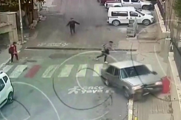 Karaman’ın Ermenek ilçesinde 2 genç, freni boşalarak hareket eden otomobilin altında kalmaktan son anda kurtuldu. Otomobilin çarptığı gençlerden birisi hafif şekilde yaralanırken, kaza anı güvenlik kamerasına yansıdı. Olay, geçtiğimiz Pazartesi günü akşam saatlerinde ilçenin Değirmenlik Mahallesi Atatürk Caddesi üzerinde yaşandı. Edinilen bilgiye göre, sahibi tarafından çalışır vaziyette yol kenarına park edilen otomobil bir anda el freninin boşalması üzerine hareket etti. Durumu fark eden araç sahibi otomobili durdurmak için arkasından koştu. Yokuş aşağı yolda otomobilin hızla arkalarından üzerlerine geldiğini son anda fark eden 2 genç ise kaçmaya çalışsa da araç birine çarparak kaldırıma fırlattı. Otomobil ise kaldırıma çıkarak durdu. Olayda alnında hafif sıyrıklar oluşan genç, çağrılan ambulansla kaldırıldığı Ermenek Devlet Hastanesi’nde yapılan tedavisinin ardından taburcu edildi. “Arkadaşın verilmiş sadakası varmış” Kazayı duyar duymaz yardıma koşan esnaf Ali Erbil, “Olay anında iş yerindeydim. Dışarıdan bir çocuğun canlı canlı kaza gördüm demesi üzerine hemen dışarıya çıktım. Otomobilin bir çocuğa çarptığını öğrenince yanına gittik. Çok şükür ki çocukta bir şey yoktu. Sadece alnında sıyrık vardı. Ambulansa haber verdik ve çocuğu tedavisi yapılmak üzere hastaneye götürdüler. Arkadaşın da verilmiş sadakası varmış. Yandan değil de önden çarpsaymış çocuğu kesin altına alırdı“ diye konuştu.