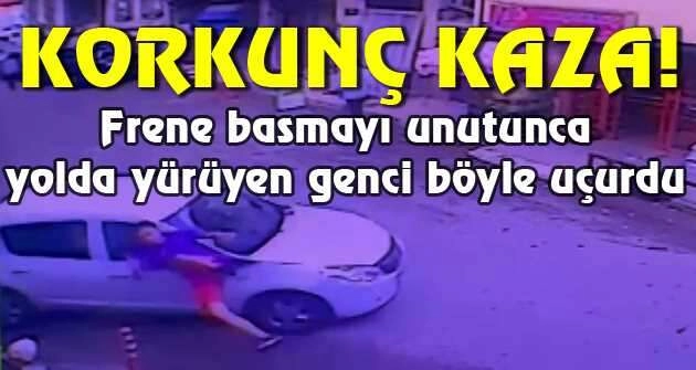Yürüdüğü sırada arkasından gelen otomobilin çarpmasıyla havaya uçan genç yaralanıp şoka girdi. Kazanın oluş anı kadın sürücünün kullandığı otomobilin ardında seyreden bir başka otomobilin kamerası ile çevredeki bir iş yerinin güvenlik kamerasına anbean yansıdı. Edinilen bilgiye göre kaza Osmangazi ilçesi Tahtakale Mahallesi, Veziri Cadde üzerinde meydana geldi. Kuştepe istikametinden Pınarbaşı mezarlığını 2 ye bölen cadde üzerinden yokuş aşağıya inen 16 LVN 90 plakalı Dacia Sandero marka otomobilin sürücüsü A.S.Ş., fren yerine gaza basınca araç yokuş aşağıya hızlandı. Veziri cami önünde aynı hızla viraja giren otomobil önce yol kenarında yürüyen 18 yaşlarındaki Fatih Türk'e çarpıp 5 metre ileriye fırlattı. Aynı otomobil daha sonra park halindeki 16 L 3444 ve 16 ACZ 043 plakalı iki ayrı otomobile daha çarparak durabildi. Çarpmanın etkisiyle havaya uçan Fatih Türk yaralandı. Şoka giren gence ilk müdahaleyi mahalleli yaptı, İhbar üzerine olay yerine gelen 112 sağlık ekipleri gencin tedavisini olay yerinde yapıp daha sonra hastaneye götürdü. Olayla ilgili tahkikat başlatan polis ekipleri kadın sürücüyü ifadesine başvurmak üzere polis merkezine götürdü. Diğer araç sürücülerinin şikayeti üzerine trafik polisleri kazayla ilgili tutanak tuttu. Olayın görgü tanıklarından Hakan Eniştekin ise, kadın sürücünün yokuş aşağı çok hızlı geldiğini belirterek, Kadın araçtan aşağıya indiğinde şoktaydı. Ne olduğunu anlatamadı. Çocuğu arkasından çarpıp 5 metre havaya uçurdu. Çocuk yere düştüğünde ağzından kan geliyordu. Boğazına kaçmasın diye yan çevirdik. İlk müdahaleyi burada bir sağlıkçı vardı o yaptı ardından ambulans geldi hastaneye götürdü. Sürücü kadınında daha sonra eşi geldi polislerle birlikte karakola gittiler" diye konuştu.