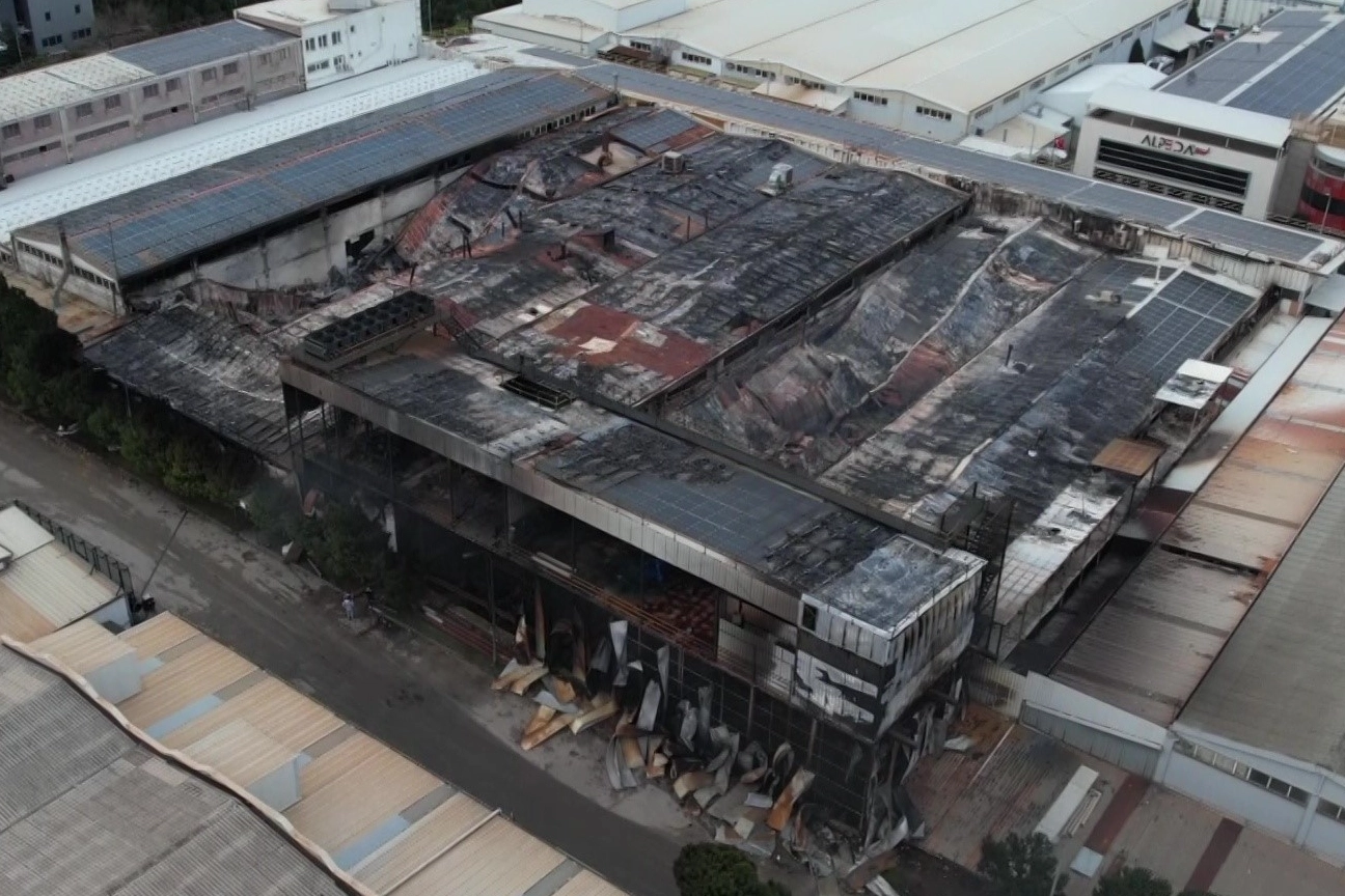 Dron ile kaydedilen görüntülerde, otomotiv sektörüne yönelik metal yüzey işlem proseslerinin yürütüldüğü fabrikanın tamamen kullanılamaz hale geldiği görüldü. Yangında fabrikanın duvarlarının büyük bölümünün yıkıldığı, yapının siyah is ve duman izleriyle kaplandığı dikkat çekti.