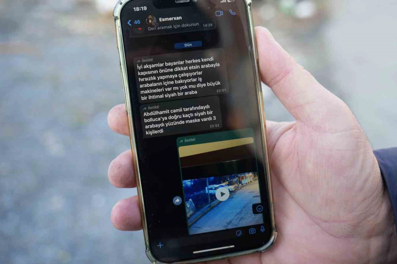 Öte yandan, hırsızlıktan dakikalar önce mahallede yaşayan kadınlardan biri sosyal medya üzerinde oluşturdukları gruba, “Bayanlar kapılarınızın önlerine dikkat edin siyah bir araç ile gelip diğer arabaların içlerini kontrol ediyorlar" yazarak komşularını uyardı. Mesajı gören ama dikkate almayan Muhammet Sayılgan’ın aracı mesajda bahsedilen hırsızlar tarafından soyuldu.